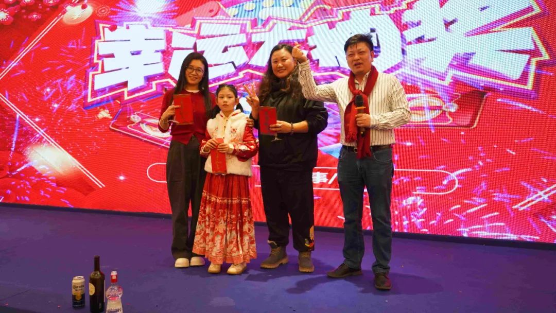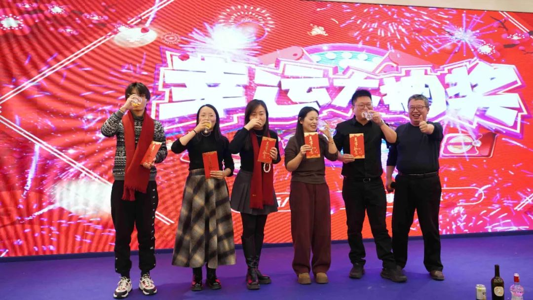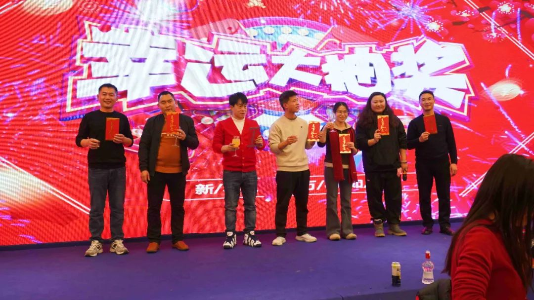 各位领导逐一上台为大家抽取并为幸运儿颁发奖品,同时临时增设超额奖励和随机红包,逐渐将晚宴气氛推向高潮。