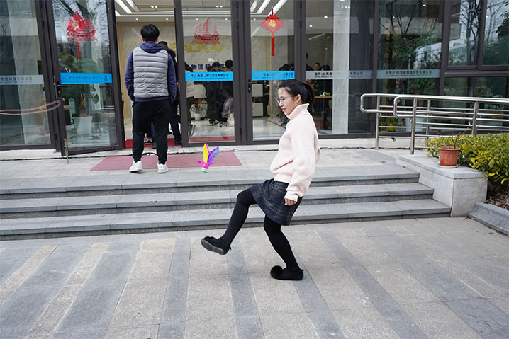 “踢毽子”这个游戏是为了活动筋骨,培养良好的身体素质,不仅丰富员工的娱乐活动,还愉悦了身心、锻炼了身体。